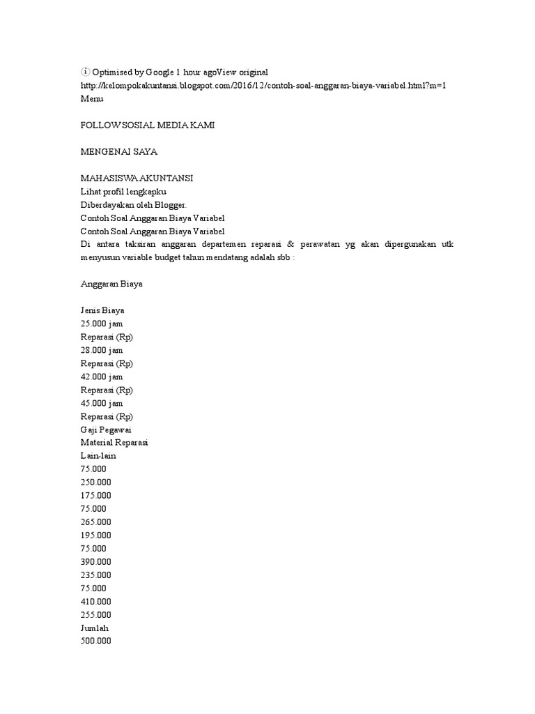 Soal Anggaran Variabel : 6 Soal Anggaran Variabel Docx A Pilihan Ganda 1 Berikut Merupakan Faktor Yang Harus Diperhatikan Dalam Penyusunan Anggaran Variabel Adalah A Course Hero : Maybe you would like to learn more about one of these?