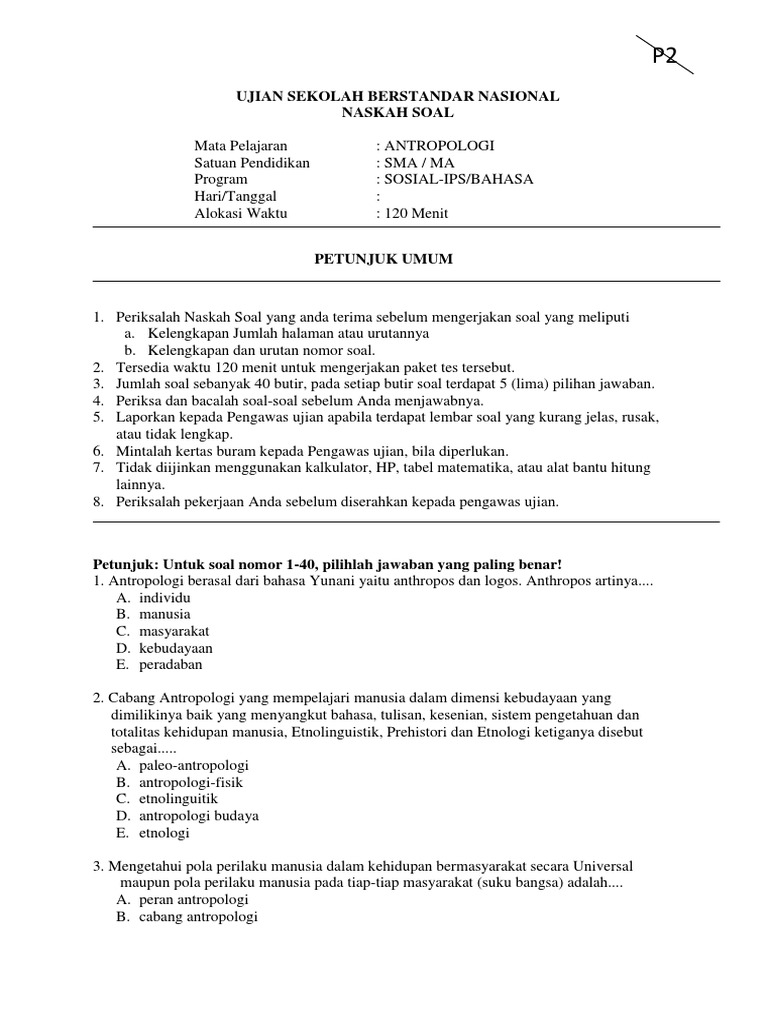 45 soal usbn antropologi sma beserta jawaban (paket.